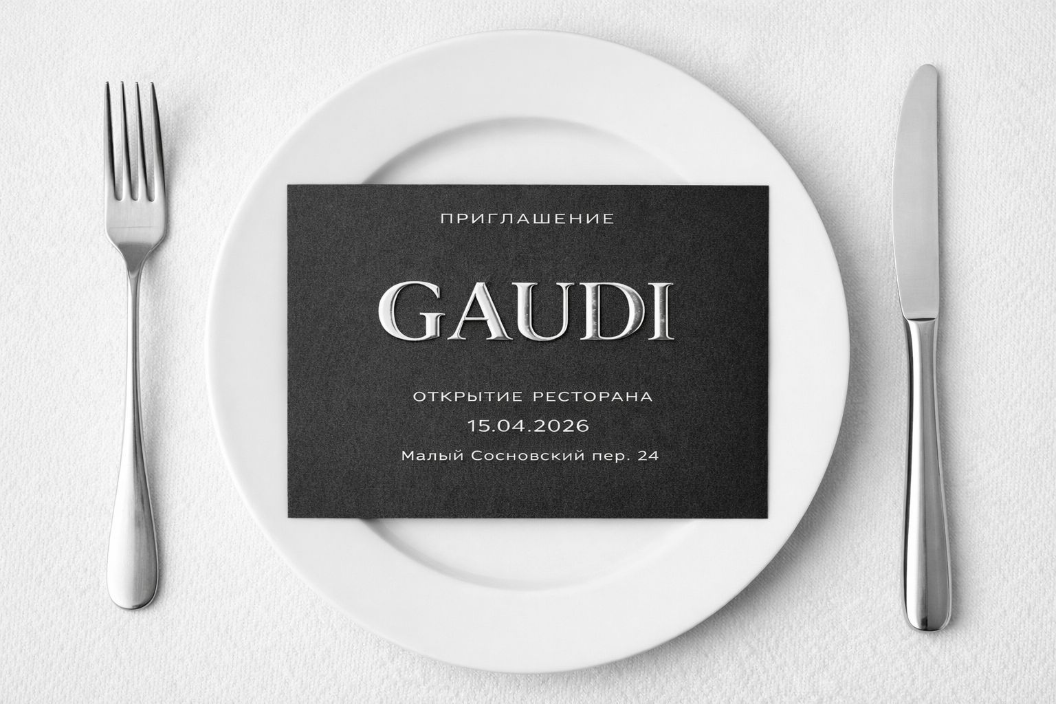 Если нужен более торжественный акцент, к лаку добавляют 3D-фольгу. Она дает металлический свет и другую фактуру, поэтому важно не перегрузить приглашение. Обычно достаточно одного короткого элемента, монограммы, знака или одного слова в заголовке.